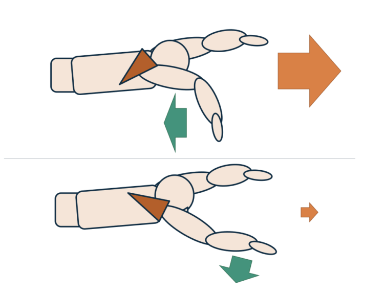 - 押す方向が下を向く