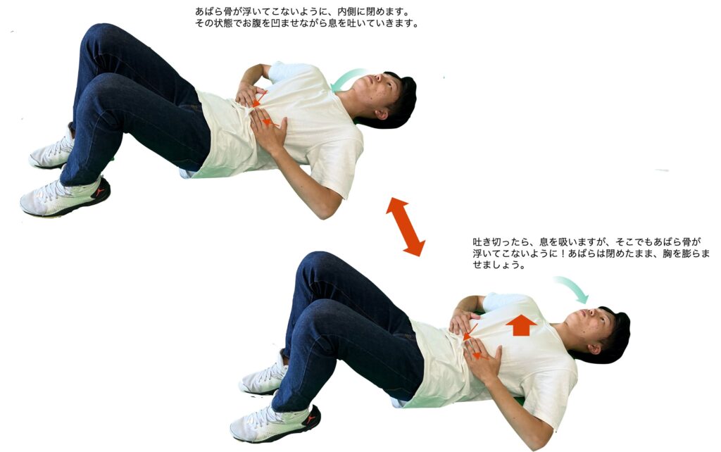 腹筋も使って、さらに“あばら骨1本1本を広げていく”トレーニングです。