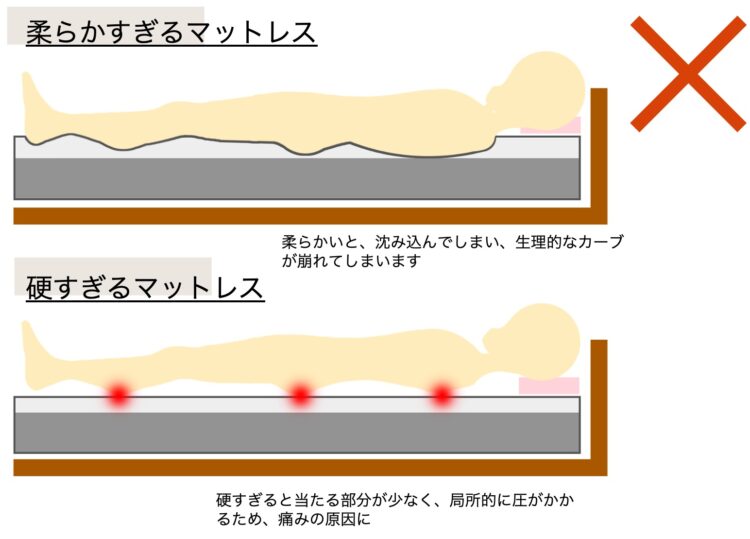 一方、柔らかすぎる敷布は腰部を十分にサポートできず、腰に負担がかかりやすくなります。