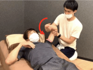 - 内旋・外旋の再獲得: まずは軽く内側にねじる動きから始め、1つ1つの筋肉の動きを丁寧に出していきます。