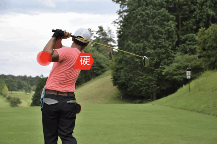 → フォロー〜フィニッシュで肘の外側が痛む