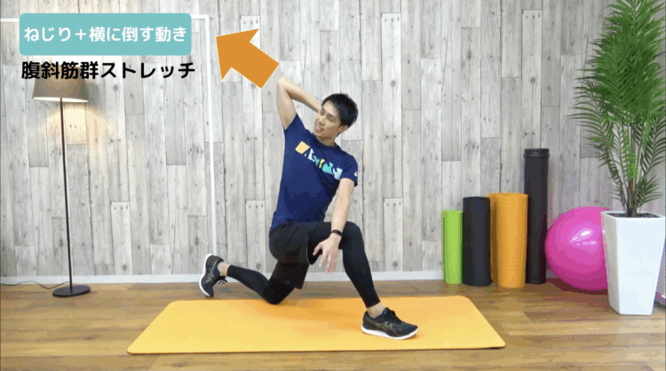 3. スイング動作を再現!ねじり×横倒しの「腹斜筋ストレッチ」