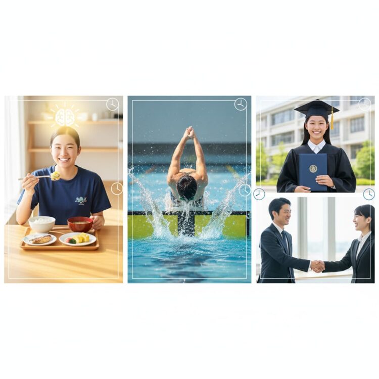 「早寝・早起き・朝ごはん」は、水泳のタイムアップだけでなく、子供の成長全般において最強の土台となります。