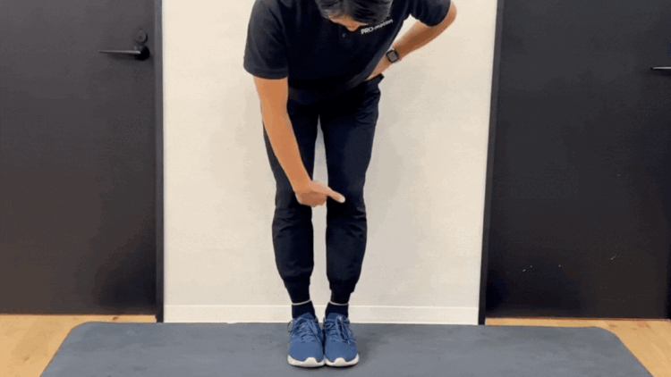 ② 片脚立ちで膝がどこに流れる?(動作パターンチェック)