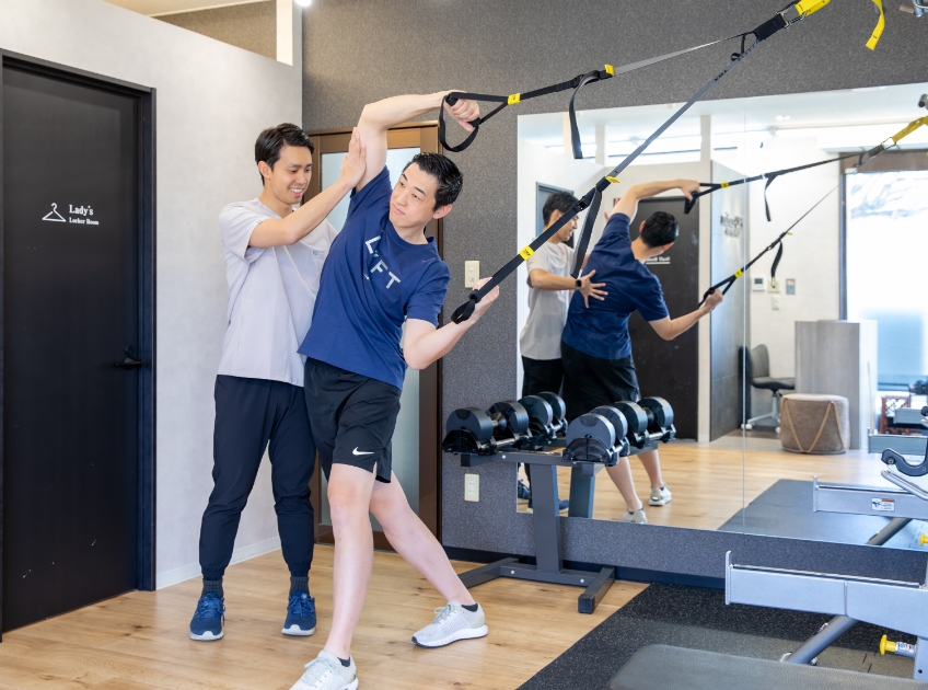 当施設では、医療系国家資格を持つスタッフが在籍しており、怪我や痛み、持病がある方のサポートを得意としています。カウンセリング時にお身体の状態をしっかり把握したうえで、その方に合ったトレーニング内容をご提案いたします。